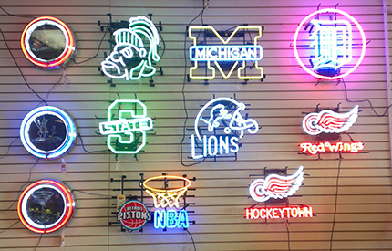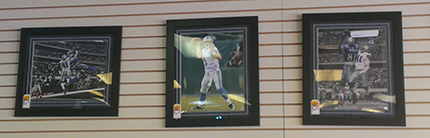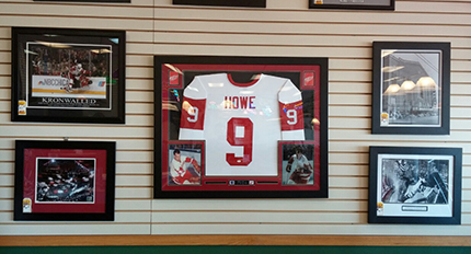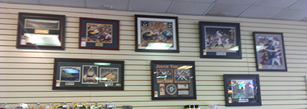 Framed sports memorabilia from U of M, MSU, The Detroit Lions and Tigers